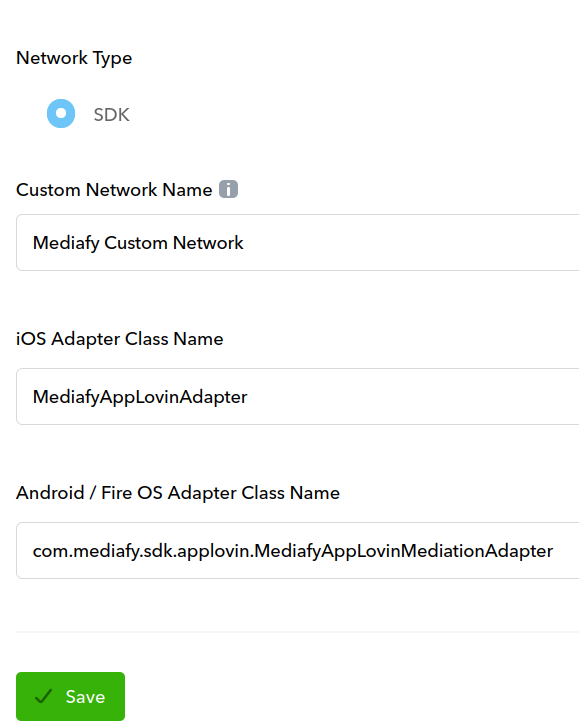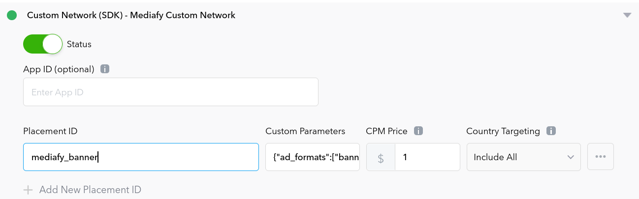 Activate Custom Network Widgets Custom Network. Fill custom event fields for the current ad format (look at the following section, "Custom event fields," for the details).